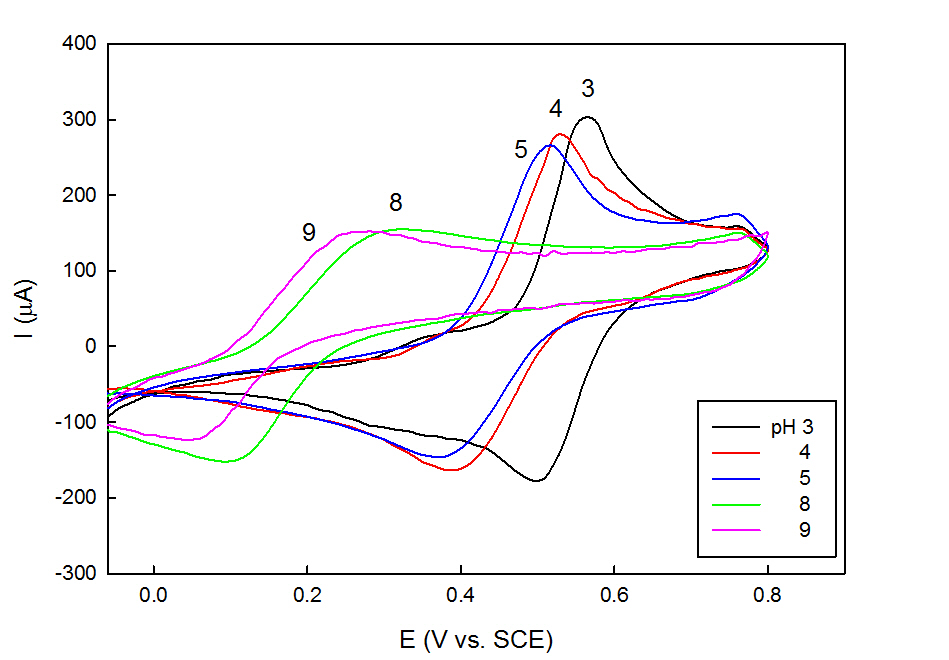 An electro-chemically active composite film containing the environmentally friendly surfactant sodium dodecyl sulfate (SDS) and poly(1-amino-9,10-anthraquinone) (PAAQ) was used as an electron transfer mediator in the electro-chemical oxidation of catechol. Compared with the bare platinum (Pt) electrode, the Pt/PAAQ-SDS modified electrode remarkably lowered the anodic peak potential of catechol, and increased the peak currents. The results obtained indicated that the activation energy for the electro-chemical oxidation of catechol at the polymer film was low (7.05 kJ mol-1). The influence of operational conditions on the response current of the catechol sensor was investigated. Studying the surface morphology of the modified electrode revealed a more porous structure due to the incorporation of the anionic surfactant on the PAAQ film. The modified electrode displayed a linear response range between 0.01 and 8.0 mM of catechol. The lower limit of detection was obtained to be 2.60 * mM. The ability of the modified electrode was also examined for the electro-chemical detection of hydroquinone (HQ) with simplicity.