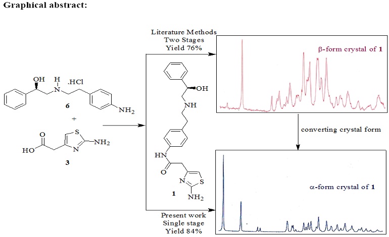 An efficient and scalable method for the direct isolation of stable α-form crystals of mirabegron (1) is developed. The developed method negates transformation of metastable β-form crystals into α-form crystals thereby overcome the limitations of reported methods and avoids additional processing steps during its manufacture. The developed method directly provides stable α-form crystals of Mirabegron (1) with yield of around 84 % and purity of >99.77% by HPLC in a single step.