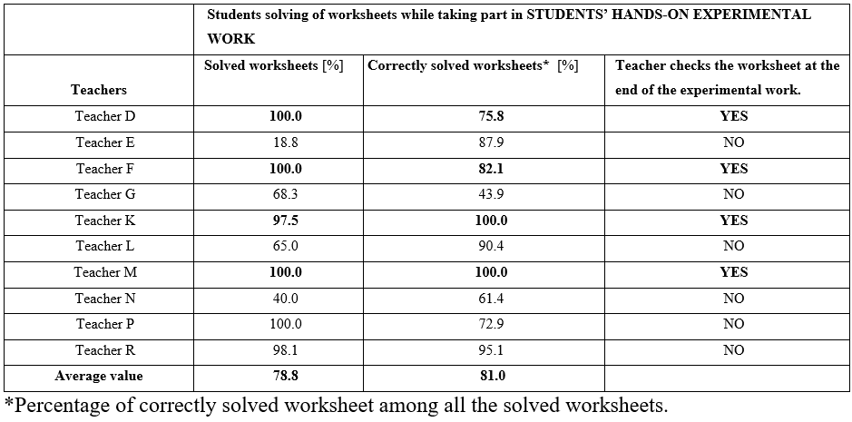 The aim of the research was to optimize the effectiveness of student learning based on experimental work in chemistry classes in Slovenian primary schools. To obtain evidence about how experimental work is implemented during regular chemistry classes, experimental work was videotaped during 19 units of chemistry lessons at 12 Slovenian primary schools from the pool of randomly selected schools. Altogether 332 eight-grade students were involved in the investigation, with an average age of 14.2 years. Students were videotaped during chemistry lessons, and their worksheets were collected afterward. The 12 chemistry teachers, who conducted lessons in these schools, were interviewed before the lessons; their teaching plans were also collected. The collected data was analyzed using qualitative methods. The results indicate that many teachers in Slovenian primary schools are not fully aware of the potential of experimental work integrated into chemistry lessons for the development of students’ experimental competence. Further research of the value of different kinds of training to support teachers for the use of experimental work in chemistry teaching is needed.