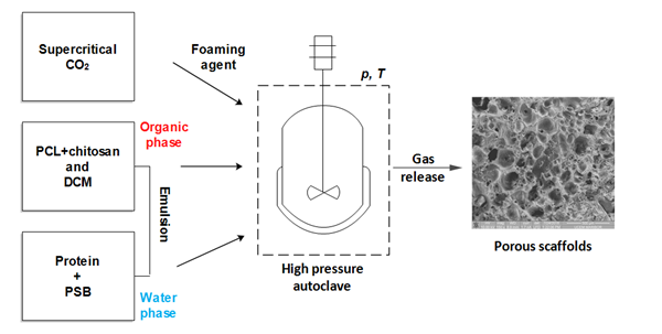 Protein release, PCL polymer, chitosan, scaffold, supercritical CO2Abstract