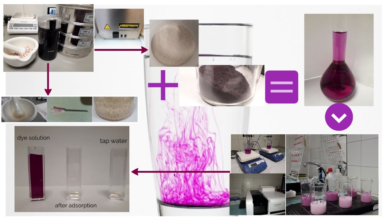 As a result of industrial development water pollution has become a major issue. Providing clean water of sufficient quality and quantity is essential. According to literature, 100 000 different dyes are used worldwide in the printing, food and textile industries. Remazol Brilliant Violet-5R belongs to the group of azo dyes used in the textile industry. The purpose of this paper is to study the removal of anionic dye RBV-5R using calcined eggshell. We investigated the effect of initial dye concentration (20-100 mg/L RBV-5R), biomass amount, contact time, temperature, and pH on the adsorption process. We calculated the amounts of adsorbed material in equilibrium and the efficiency of the adsorption process. Various studies were performed on the adsorption process and the adsorbent morphology (EDX, SEM, FTIR, Raman), as well as isotherm (Langmuir, Freundlich, Temkin and Dubinin-Radushkevich), kinetic and diffusion models were used to characterize the process. Calcined eggshell was also characterized by thermogravimetric, BET surface methods. Based on the results obtained, it can be said that the calcined eggshell can be used effectively to remove the dye from the aqueous solution.
