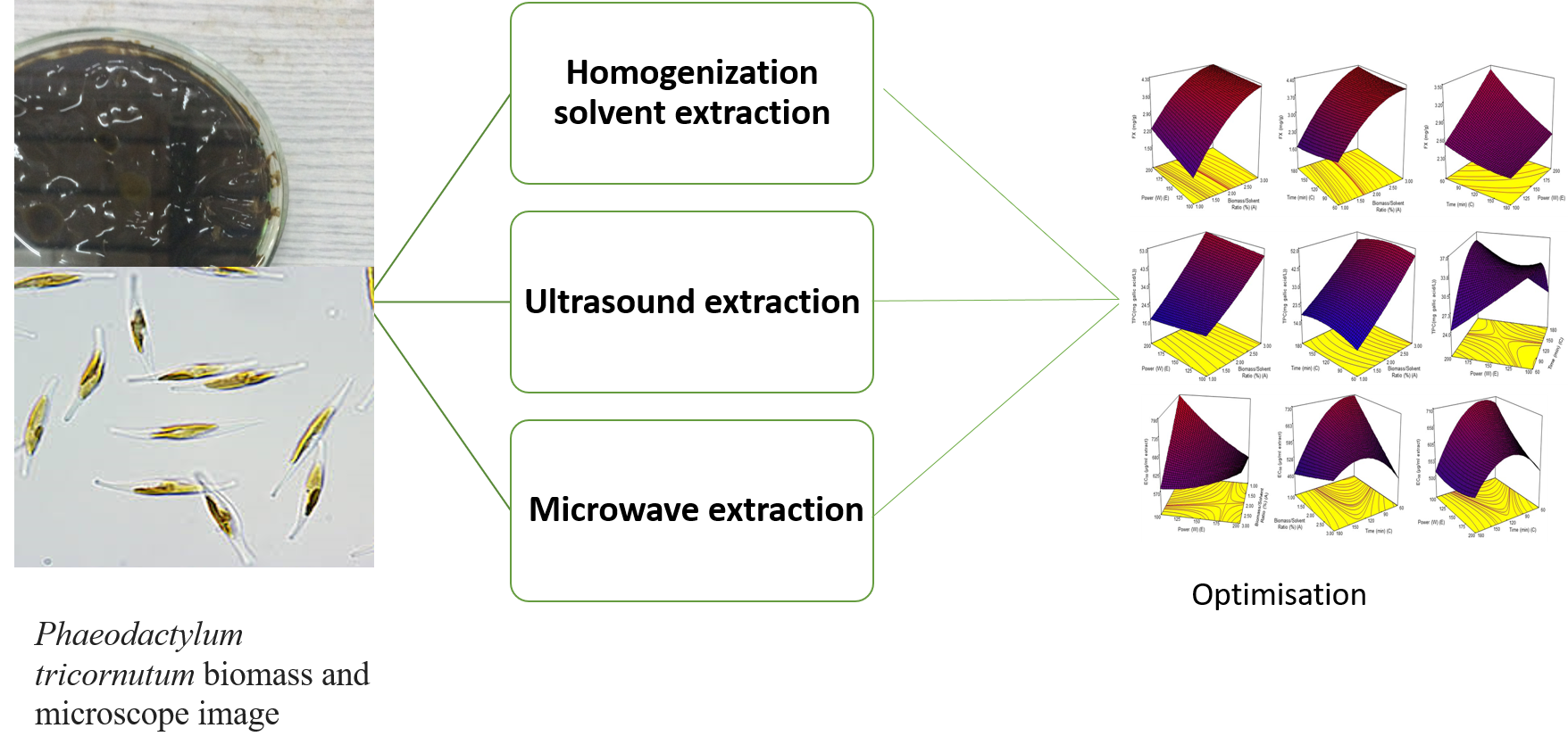 Fucoxanthin, microwave extraction, optimization, Phaeodactylum tricornutum, total phenolic compounds, ultrasonic extractionAbstract