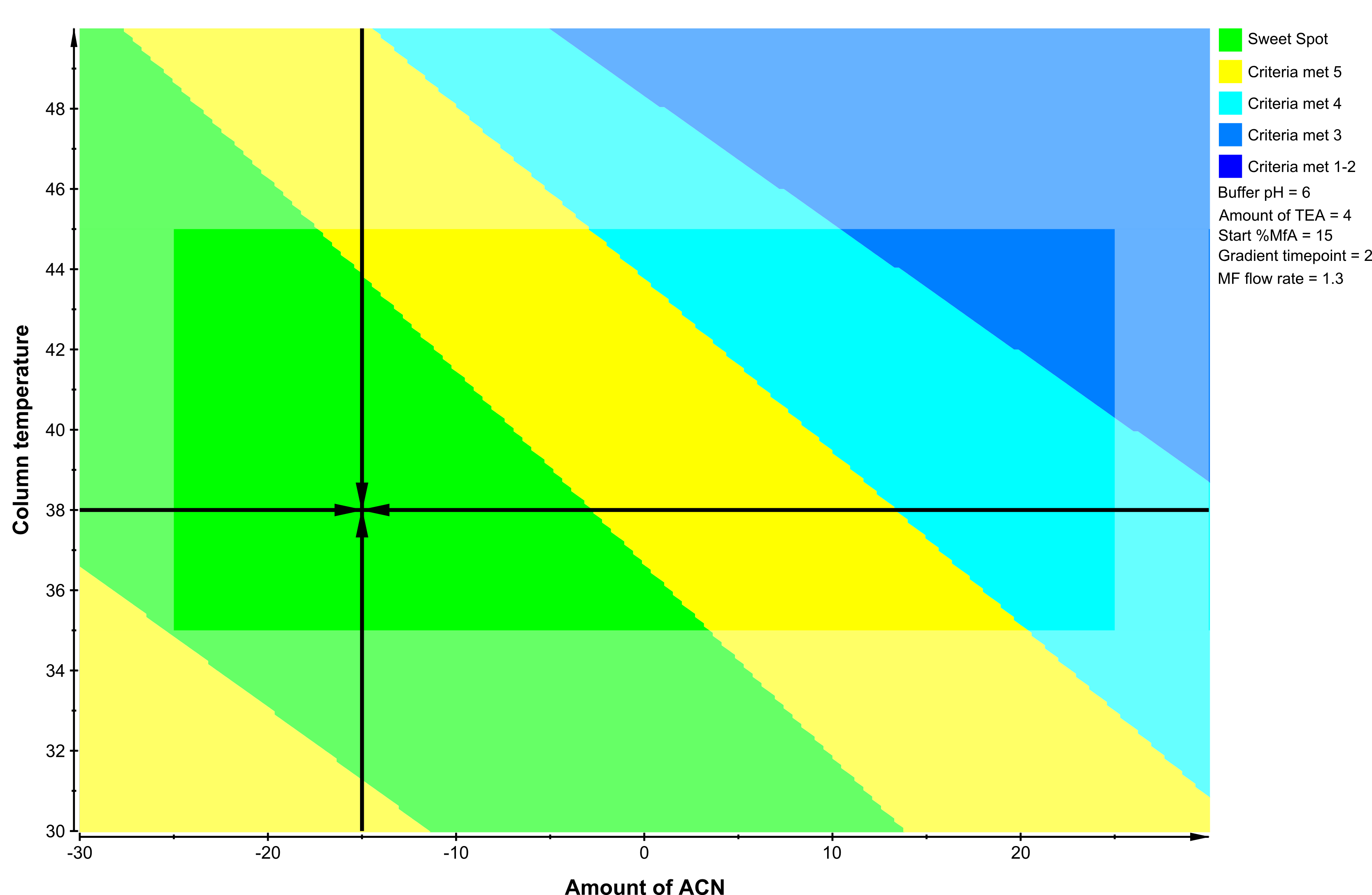 The effects of seven different chromatographic parameters and five sample preparation parameters in a high performance liquid chromatography (HPLC) method for assay determination of benzalkonium chloride (BKC) in a nasal formulation were evaluated using two fractional factorial experimental designs. The design space of the analytical method was modeled using Umetrics Modde software and the optimal method conditions were predicted. The optimum HPLC chromatographic conditions were obtained using a Luna CN column (150 x 4.6 mm, 3 µm). The results show that mobile phase pH, amount of acetonitrile in the mobile phase and column temperature are the most important factors in obtaining good separation of BKC homologs from an interfering peak. In the sample preparation step, the use of an aqueous solution for dissolving the samples was the most important factor since it eliminated the interfering effect of the active compound. The optimal method was validated for linearity, accuracy and precision.