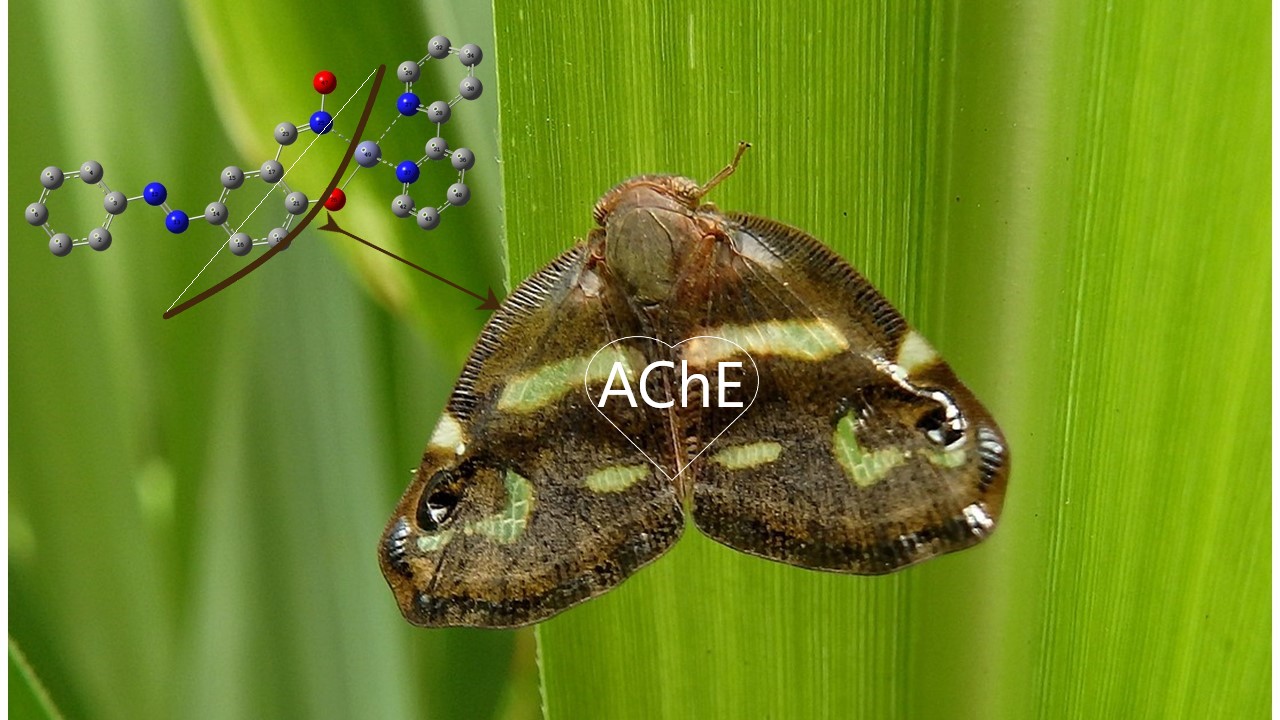 New mononuclear ternary transition metal complexes: [M(HL)(bipy)2]ClO4, (M: Mn(II) for 1, Ni(II) for 2), [M(HL)(bipy) (ClO4)], (M: Ni(II) for 3, Cu(II) for 4, Zn(II) for 5) with M(II), 2-[(E)-(hydroxyimino)methyl]-4-[(E)-phenyldiazenyl]phenol, H2L, and 2,2ˈ-bipyridine were synthesized. The structures of the complexes were investigated by using various analytical, spectroscopic techniques such as elemental analysis, FTIR, UV-Vis, NMR, MALDI-TOF mass spectrometry, thermal analysis, and computational studies containing geometric optimizations and theoretical calculations of vibrations and electronic transitions. IR and thermal analysis data verifies the proposed structure of the complexes. The inhibition activities of the complexes against acetylcholinesterase (AChE) extracted from Ricania simulans adults and nymphs were examined and all the complexes were found to be active. Among the complexes studied, the most inhibition activity was exhibited by complex 5 with the lowest IC50 value (3.2±0.8) for AChE of adults, complex 3 with the lowest IC50 value (4.6±0.8) for AChE of nymphs.
