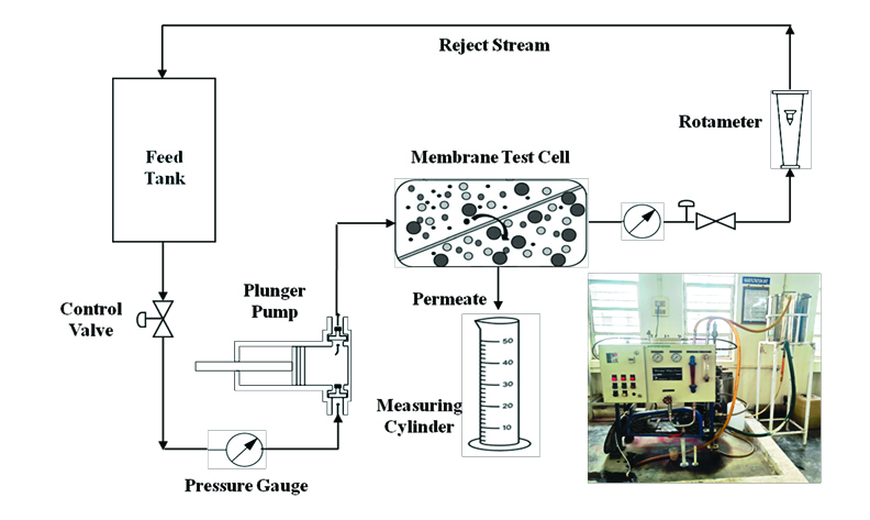 Modelling and data fitting for the prediction of permeate flux during ultrafiltration (UF) of a model feed solution of sodium lignosulfonate was carried out following resistance in series, gel polarization and Kedem Katchalsky equations. The experiments were conducted in a laboratory UF unit equipped with PES/HFUF asymmetric membrane under specific operating conditions by altering some parameters including solute concentration, transmembrane pressure (TMP), and cross flow velocity (CFV). The maximum experimental permeate flux was observed at TMP of 3.92 bar and CFV 0.527 ms−1 was 19.6 × 10−6 m3m−2s−1. The theoretical and experimental volumetric flux was plotted, and their extent of resemblance was compared and validated statistically. The study sheds light on the effective upcycling of sodium lignosulfonate from spent liquor via ultrafiltration.