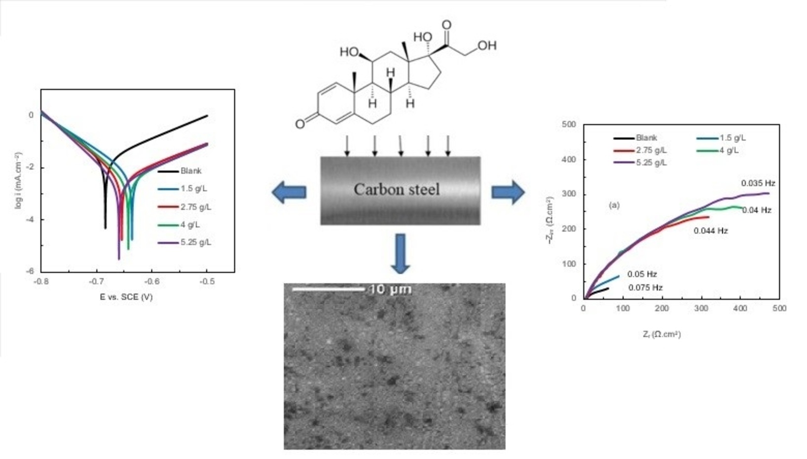 The present study evaluated the inhibition performance of expired prednisolone against the corrosion of AISI 1020 carbon steel in a 3.5% sodium chloride medium. The inhibition effectiveness was evaluated using electrochemical impedance spectroscopy, potentiodynamic polarization, gravimetric measurements, and surface characterization techniques. Data obtained from the polarization studies indicated that prednisolone acted as mixed-type inhibitor. Electrochemical impedance spectroscopy results revealed an increase in charge transfer resistance with rising inhibitor concentration. The inhibitor showed a maximum inhibition efficiency of 90% at 298 K. The interaction between the steel surface and the inhibitor was determined to be physisorption, consistent with the Langmuir adsorption isotherm model. The corrosion inhibition performance of prednisolone decreased with increasing temperature, reaching 79.42% at 328 K. Surface characterization showed that the inhibitor significantly reduced the corrosion on the metal surface.